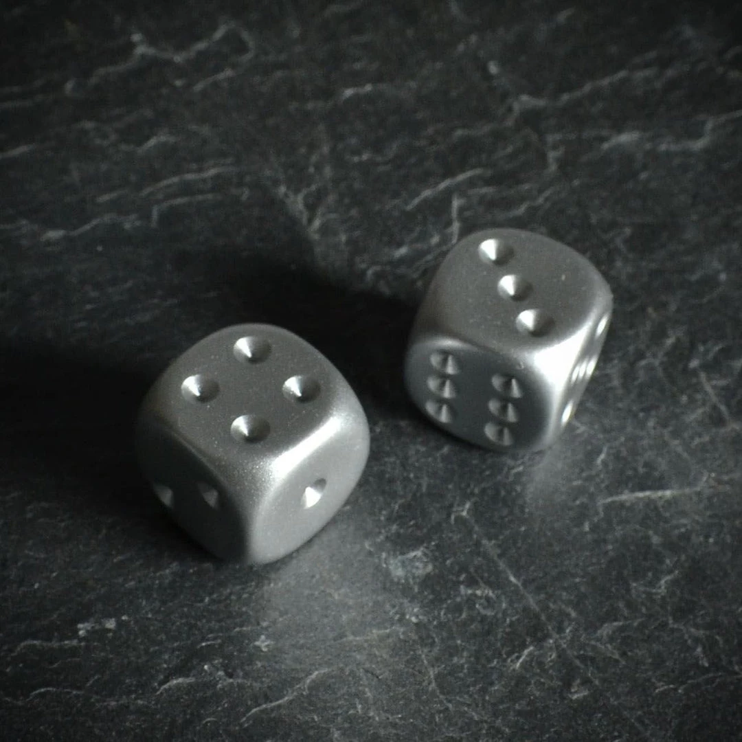 Light weight Aluminum plated pair of 16mm D6 dice from Chessex. Dice feature a smooth surface finish and are plastic dice internally.