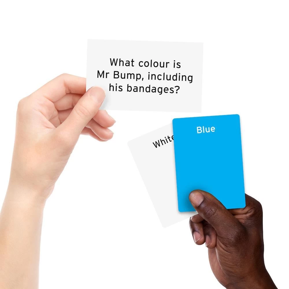 Crafty questions. Colourful answers. No good at quizzes? Great, because in this game we give you all the answers before you start. All you have to do is work out which of the 11 Colour Cards in your hand correctly answers one of Colourbrain’s crafty questions. Get it right and you could be in luck. Now you need the other teams to get it wrong to walk off with the points — while they turn green with envy. Content: 344 cards, 1 rainbow pencil, 1 score pad