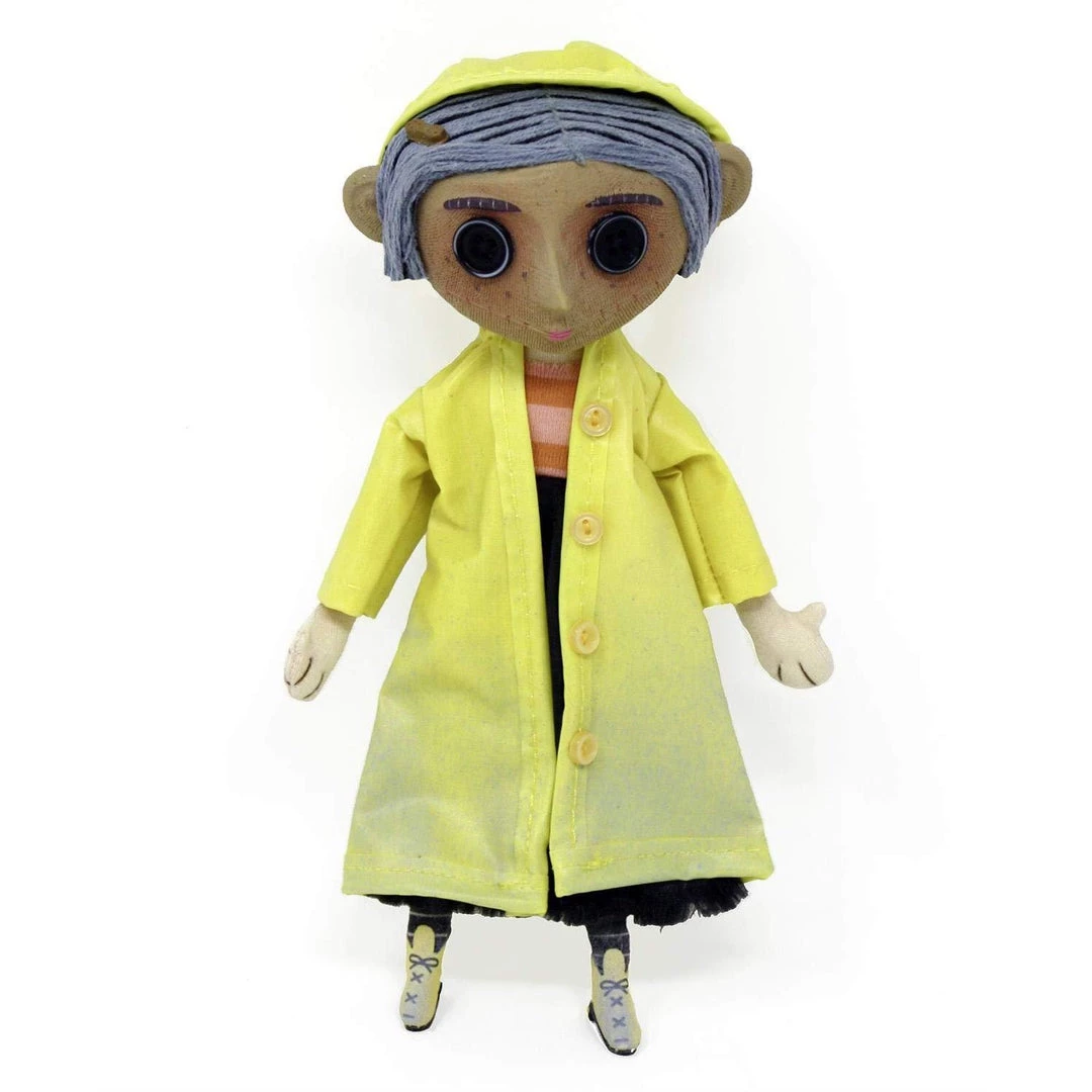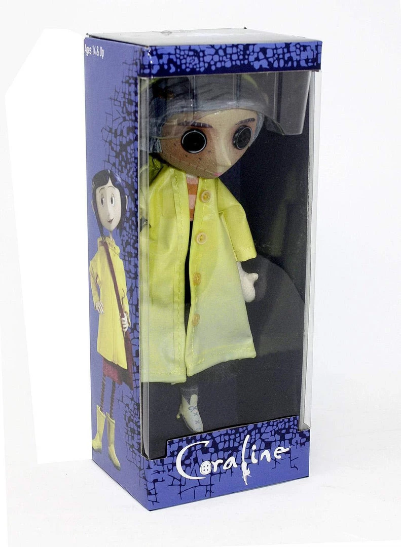 Bring home the weird world of Coraline! This detailed replica of Coraline’s doll comes from the stop-motion movie adaptation of Neil Gaiman’s fun and spooky book.It lovingly reproduces the doll as seen in the film, from the yarn hair and button eyes to the removable yellow raincoat. The doll has a hidden wire armature so you can pose her arms, legs, even her raincoat! Over 23 cm tall. A great collectible for fans of all ages.
