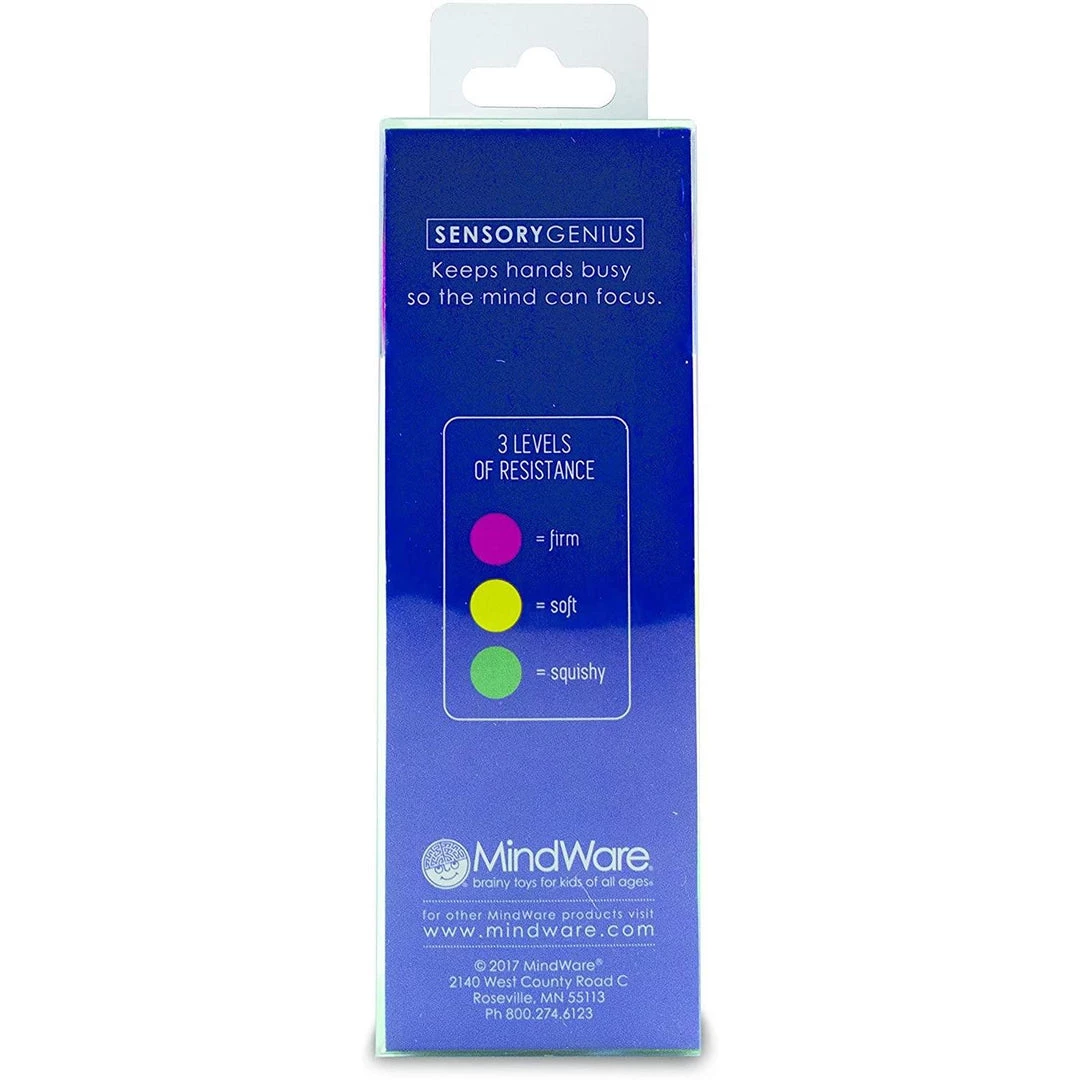 Squeeze your stress away! Three levels of resistance: soft, medium and firm. A great quality fidget toy, part of the sensory genius MindWare toys range. The perfect addition to fidget toys for homes and schools! Suitable for ages 5+.