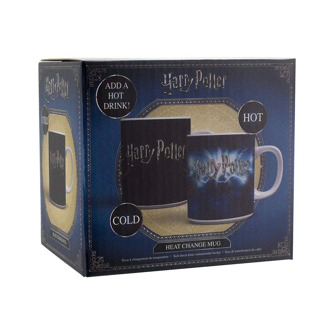 Pour your favourite hot beverage into the Harry Potter Magic Wand Heat Change Mug and watch as it magically transforms before your eyes. When cold, this standard sized mug is dark. However, as soon as this mug is warm the wands of Harry, Hermione and Ron spark into action firing bolts of magic, illuminating the official Harry Potter logo. This is the perfect gift for lovers of the Harry Potter franchise and makes a great accompaniment to your next tea-break. The Harry Potter Magic Wand Heat Change Mug is great for use at home, at work or at school. Capacity: Standard Size Size: 8 x 8 x 12 cm