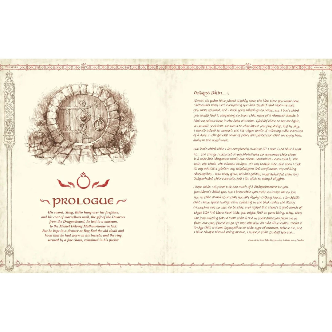 The One Ringâ„¢ Starter Set contains all you need to take your first step into Middle-earth and experience the adventures Hobbits get up to. Three volumes containing The Rules, The Shire and The Adventures. Totalling 107 pages in all. A large double-sided map showing the Shire and Eriador. Eight double-sided pre-generated character sheets and 30 Wargear Cards. Six double-sided Journey Role and Combat Stance Cards Two D12 Feat Dice and Six D6 Success Dice.
