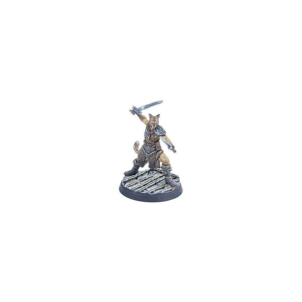 Fight for Skyrim, for wealth, glory, and fame with this expansion to your Adventurer forces. LYDIA supports her thane with sword and shield while honourable KHARJO repays his debt for the protection of his kin. The ORC BARBARIAN charge into battle at your side as the lithe KHAJIIT BANDIT pounces forward for the kill – all the while support from afar by the BRETON RANGER. This set contains five 32mm scale high quality multi-part resin miniatures with bases. Requires some assembly. Supplied unpainted. Contents 1 x Lydia, Dragonsreach Housecarl 1 x Kharjo, Caravan Guard 1 x Orc Barbarian with 2-handed axe 1x Khajiit Bandit with sword and knife 1x Breton Ranger with bow 5 x Scenic Bases