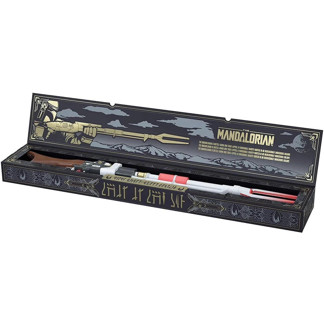 STAR WARS BLASTER REPLICA: This dart-firing blaster is meticulously detailed, capturing the look of the Amban Phase-pulse blaster seen in The Mandalorian live-action TV series on Disney Plus MEASURES OVER 50 INCHES LONG: The blaster measures 50.25 inches long (1.27 meters) and comes fully assembled in premium packaging, perfect for display BLASTER SOUNDS AND ELECTRONIC SCOPE WITH ILLUMINATED LENS: Features accurate blaster sounds and an electronic scope with a illuminated lens (Requires 2x 1.5v AAA alkaline batteries, not included) 10 NERF DARTS, BREECH LOAD, PRIMING HANDLE: This series-accurate, breech-load blaster has a handle you pull back to prime the blaster and includes 10 Official Nerf Elite foam darts THE MANDALORIAN: The Mandalorian is battle-worn and tight-lipped, a formidable bounty hunter in an increasingly dangerous galaxy